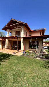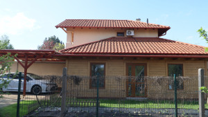 Nyílászárók: Fa (vörösfenyő színű) ablakok, zsaluk, kovácsoltvas korlátok, esztétikus vakolt homlokzat.